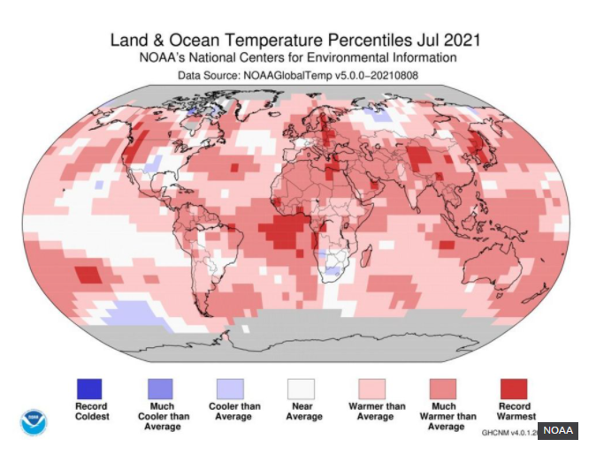 In a statement, the National Oceanic and Atmospheric Administration (NOAA) said that July's "unenviable distinction" was a cause for concern.